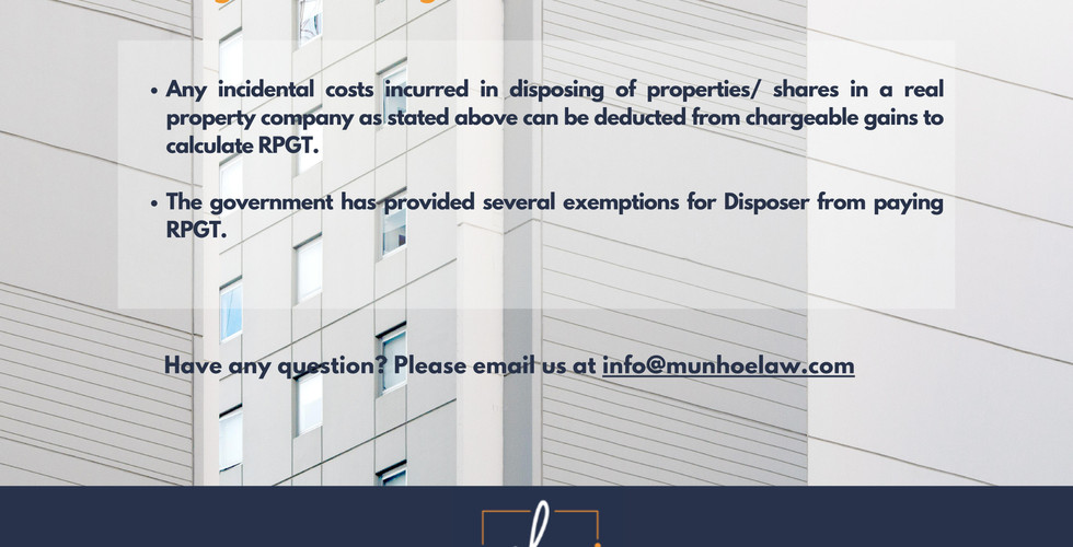 Understanding the Real Property Gain Tax in Malaysia (Part 2)Admin 2020May 13, 20211 min readFor Part 1 please click here.Creator's Profile:Rachel is an Associate in Munhoe. Her main practice areas are real estate and conveyancing.